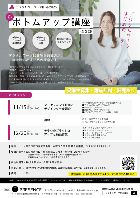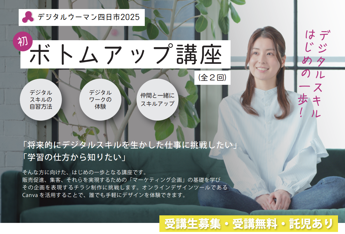 マーケティング企画やチラシデザインなどを体験しながらデジタルスキルの自学自習方法を学べる基礎講座です!